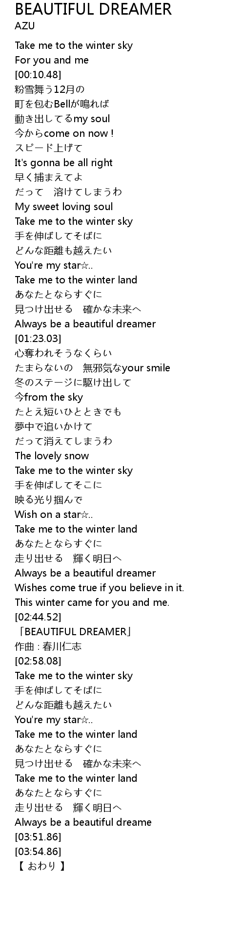 | [02:47.08] | 「BEAUTIFUL DREAMER」 |