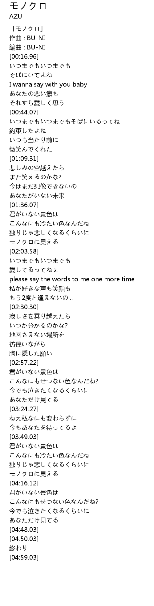 | [04:02.93] | 独りじゃ悲しくなるくらいに |