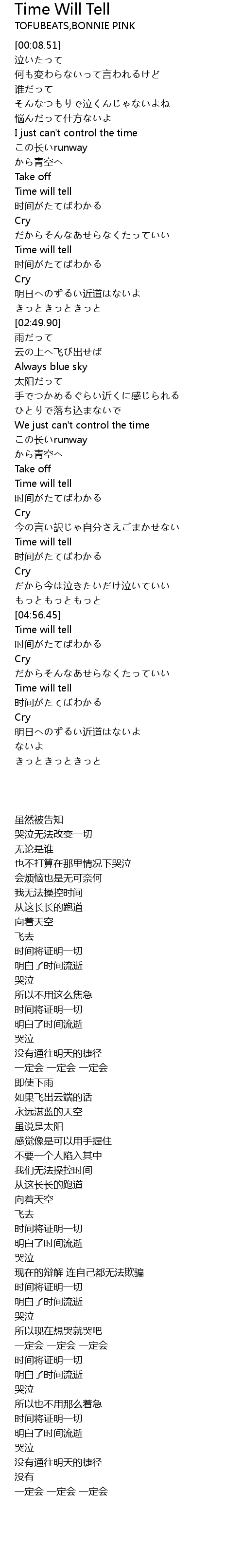 | [04:10.13] | Cry |