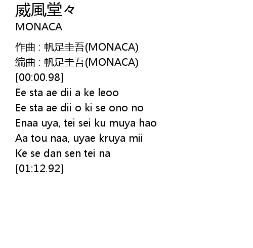 | [00:00.55] | bian qu : fan zu gui wu MONACA |