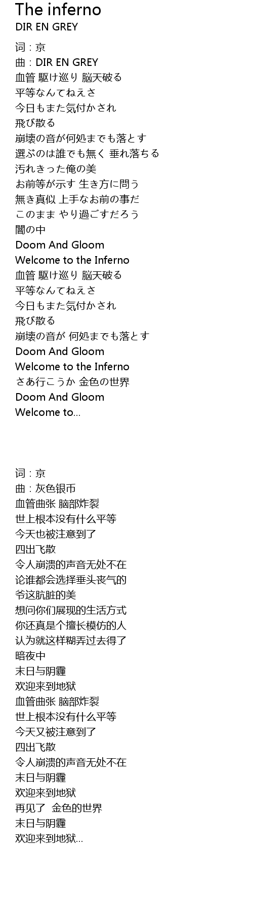 | [00:56.33] | Welcome to the Inferno |