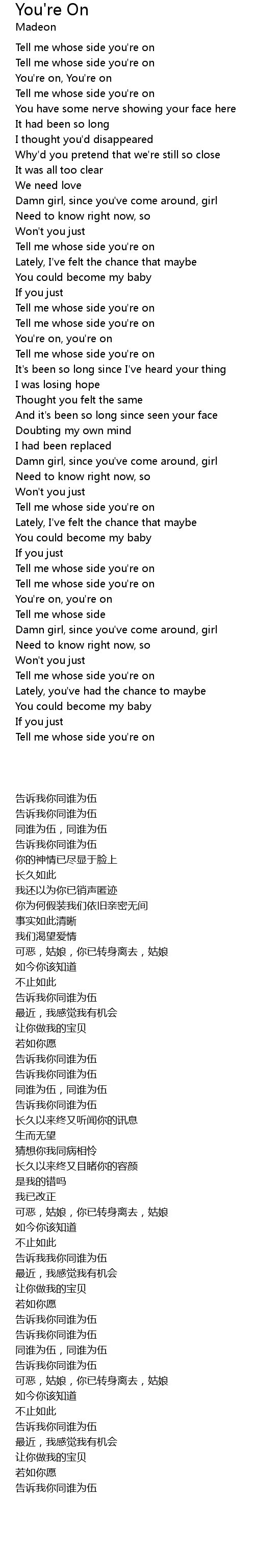 | [00:17.00] | Tell me whose side you're on |