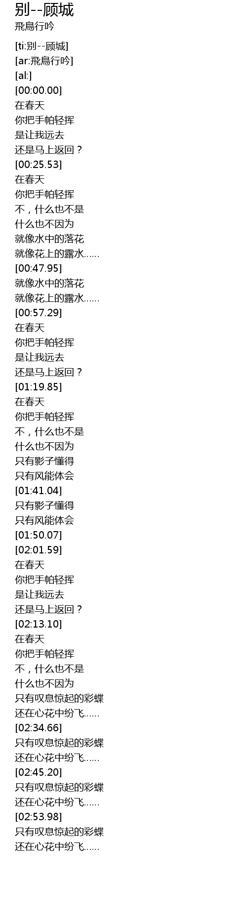 | [ti:别--顾城] | |