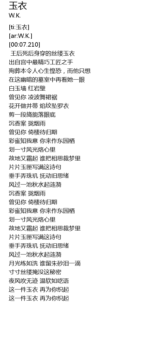 | [04:17.270] | 这一件玉衣 再为你织起 |