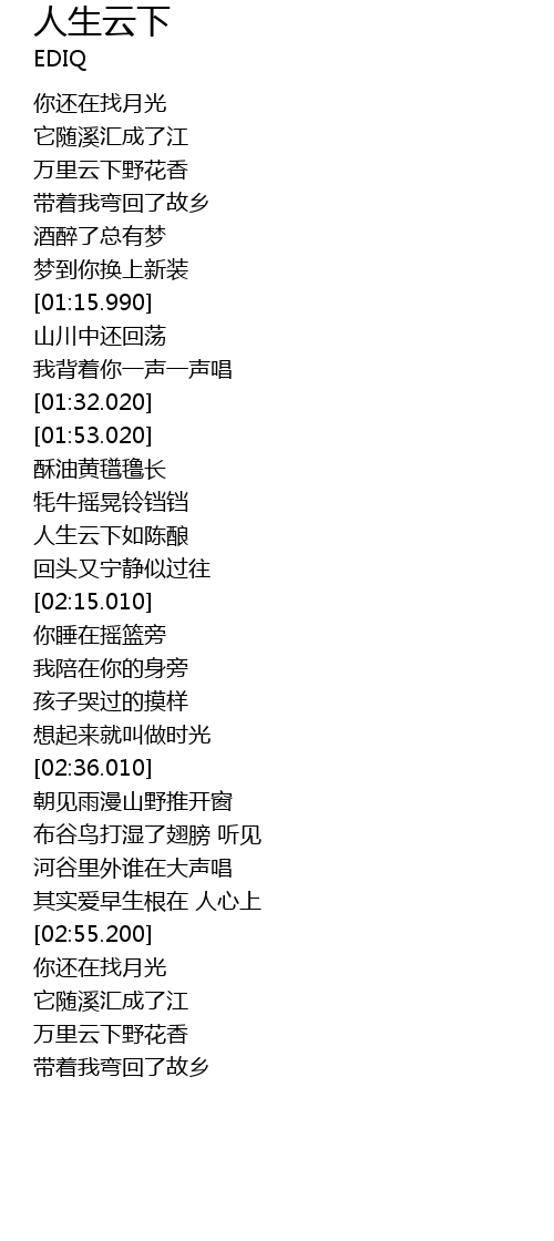| [00:53.610] | 它随溪汇成了江 |