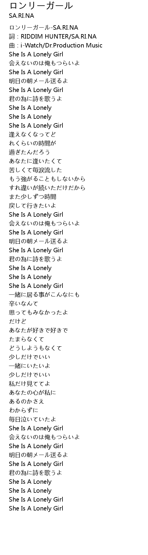 | [00:01.216] | ロンリーガール-SA.RI.NA |