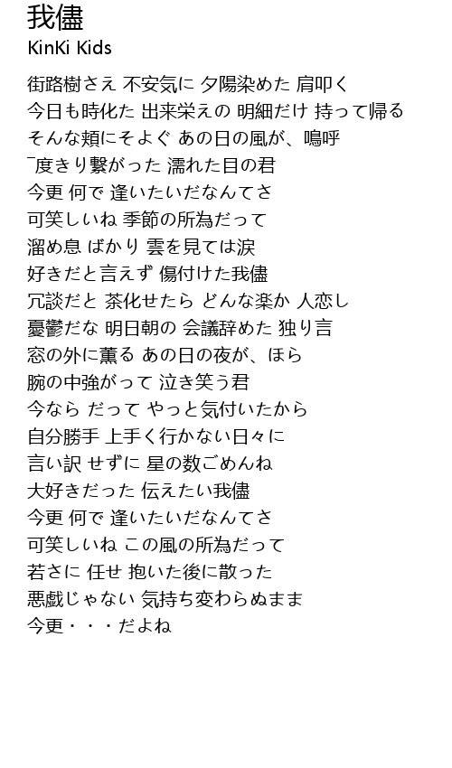 | [02:04.08] | 冗談だと 茶化せたら どんな楽か 人恋し |