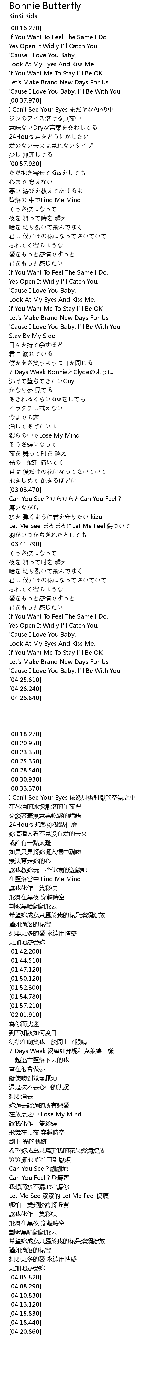 | [03:21.590] | Can You See?ひらひらとCan You Feel? |