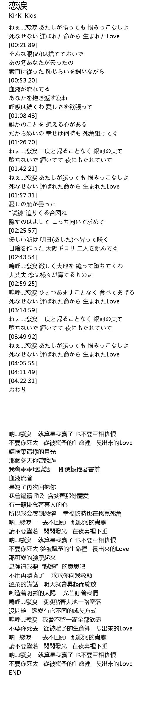 | [01:43.31] | ねぇ…恋涙 あたしが勝っても 恨みっこなしよ |