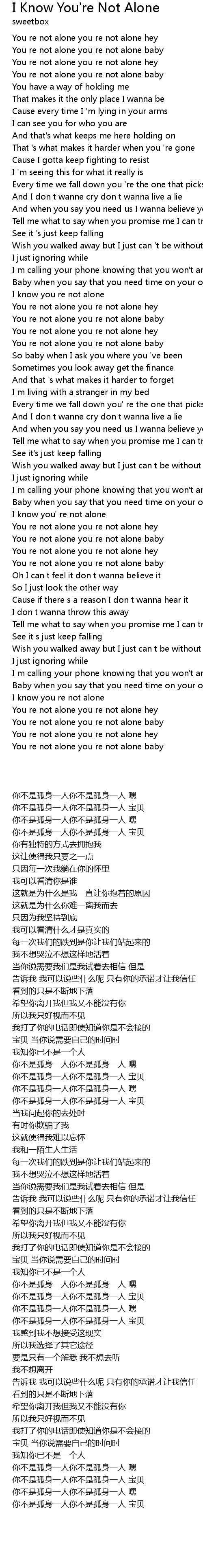 You re not alone you re not alone baby |