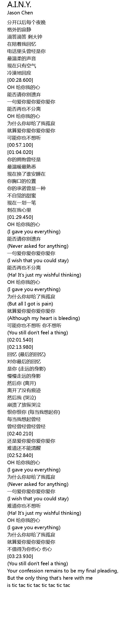 | [03:00.280] | yi ju ai ni ai ni ai ni ai ni |