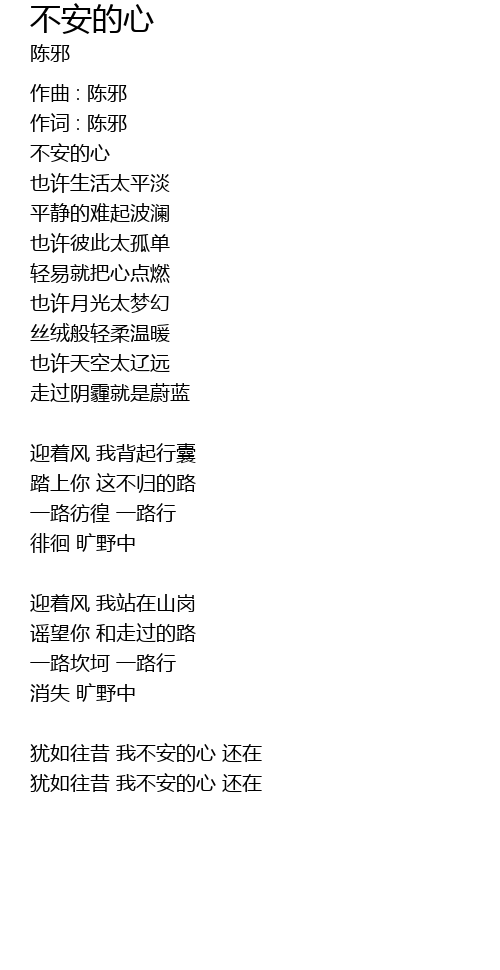 | 犹如往昔 我不安的心 还在 | |