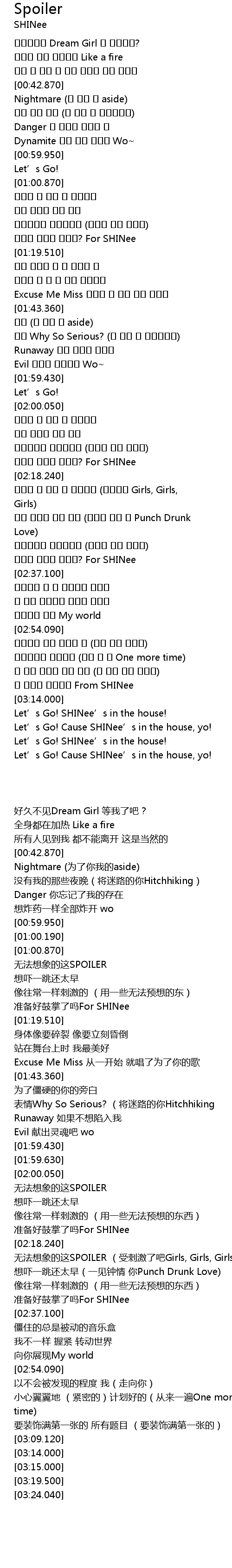 | [03:19.500] | Let’s Go! Cause SHINee’s in the house, yo! |