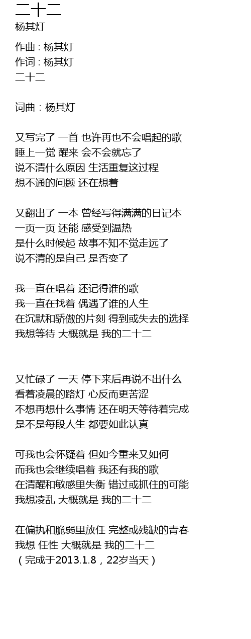 | wǒ xiǎng rèn xìng dà gài jiù shì wǒ de èr shí èr | |