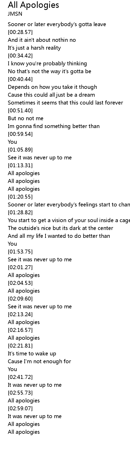 | [00:23.95] | Sooner or later everybody's gotta leave |