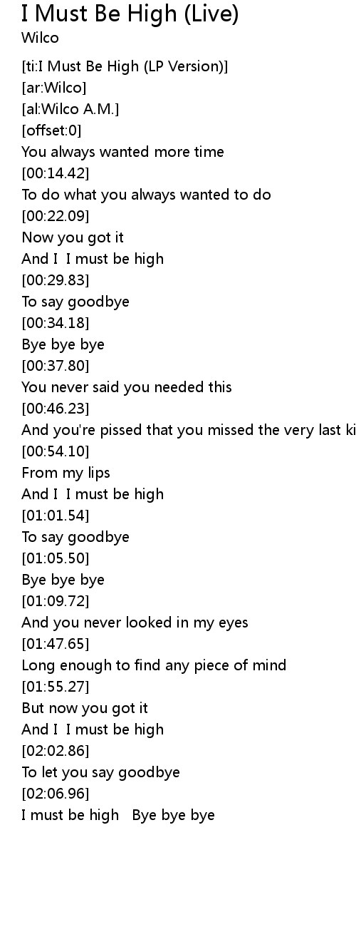 [ti:I Must Be High (LP Version)] |
