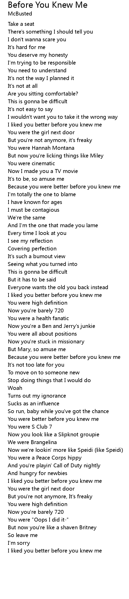 | I liked you better before you knew me |