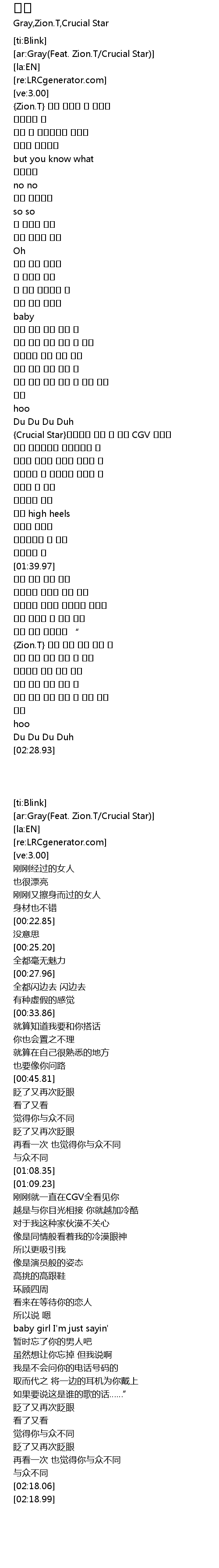 | [ar:Gray(Feat. Zion.T/Crucial Star)] | |