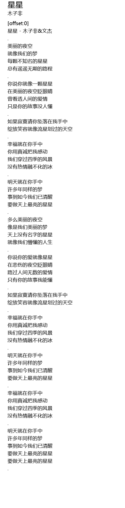 | [00:00.81] | 星星 - 木子非&文杰 |