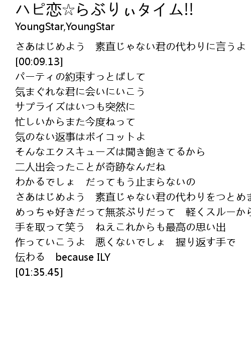 | [01:03.20] | さあはじめよう 素直じゃない君の代わりをつとめましょう |
