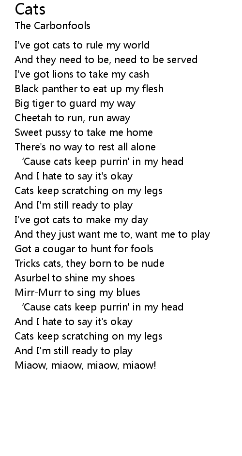 | ' Cause cats keep purrin' in my head | |