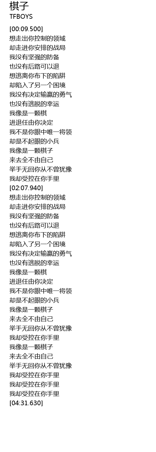 | [03:25.040] | 我不是你眼中唯一将领 |