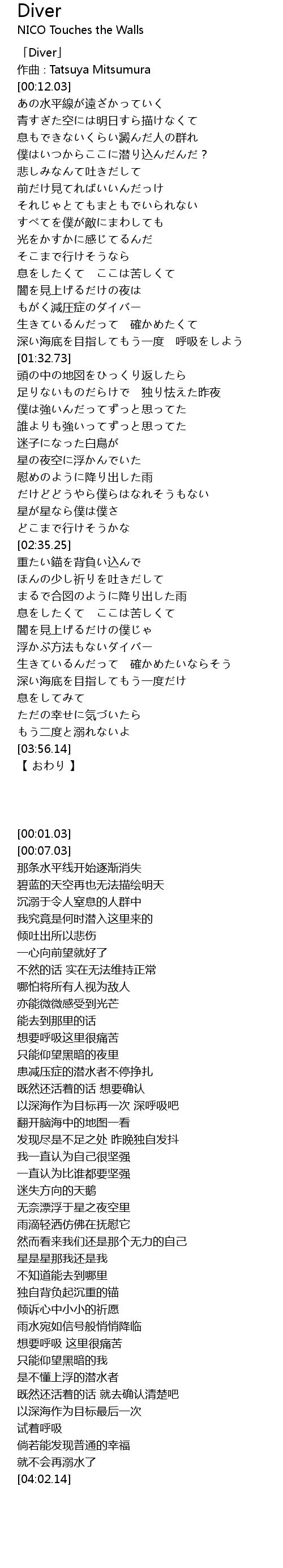 | [00:01.03] | 「Diver」 |