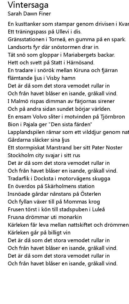 | Song | Vintersaga |