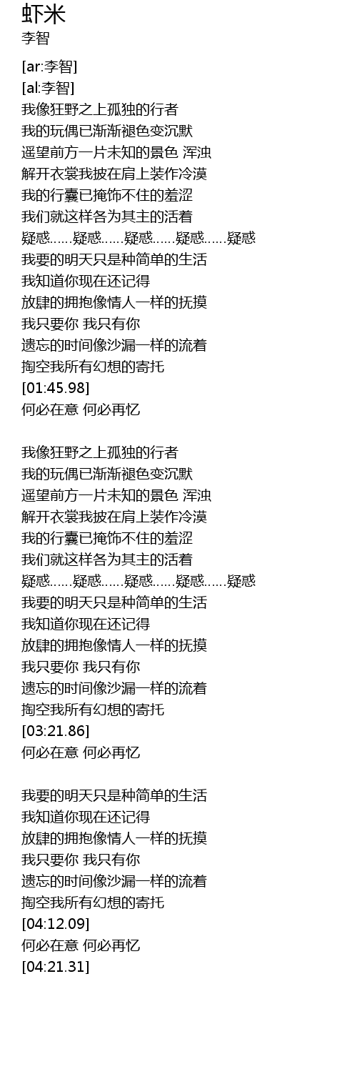 | [01:41.79] | 掏空我所有幻想的寄托 |