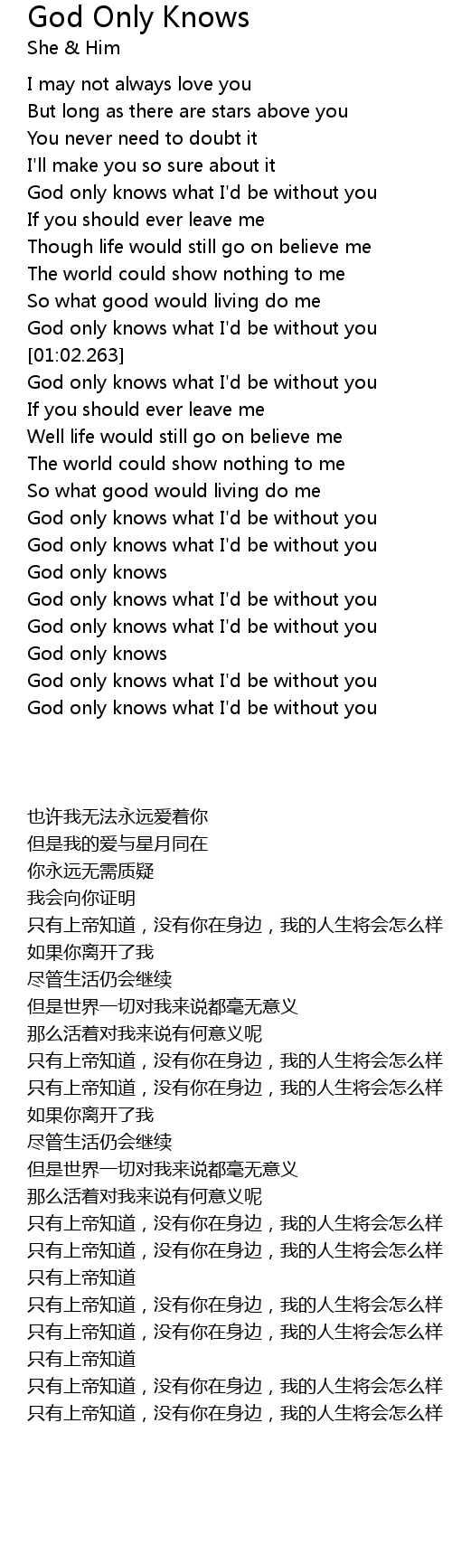 God only knows what I'd be without you |