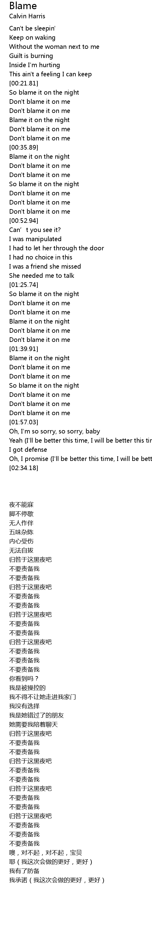 | [02:19.63] | Oh, I' m so sorry, so sorry, baby |