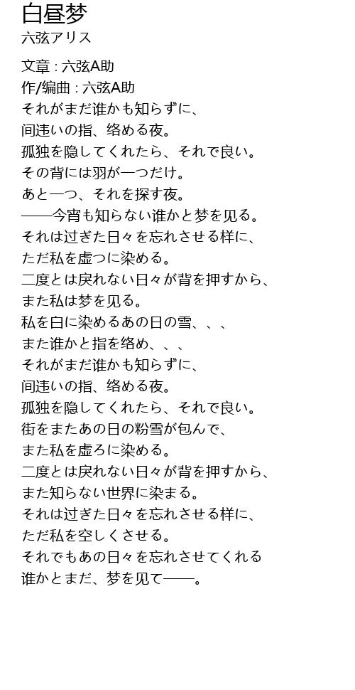 | ——今宵も知らない谁かと梦を见る。 | |