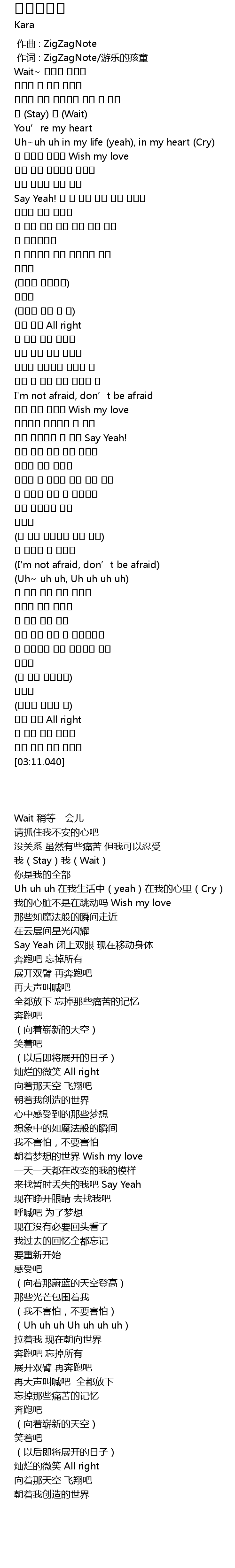 | [00:01.00] | 作词 : ZigZagNote/游乐的孩童 |