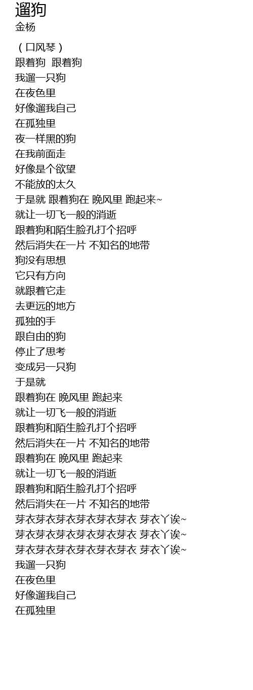| [02:57.03 0] | 跟着狗 跟着狗 |