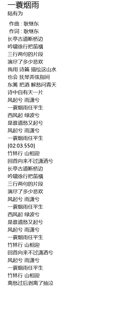 | [03:50.220] | 一蓑烟雨任平生 |