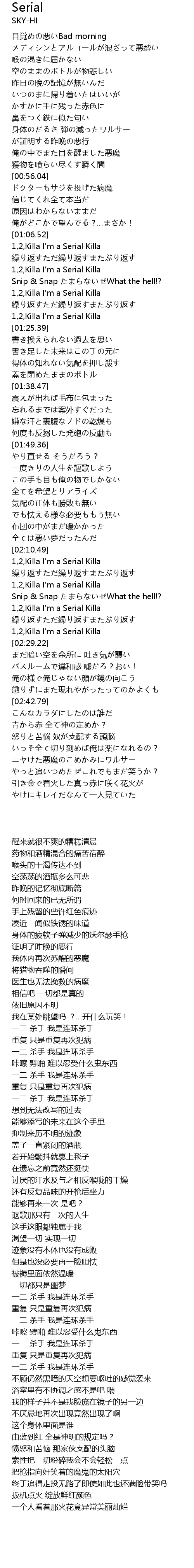 | [02:21.45] | 1, 2, Killa I' m a Serial Killa |