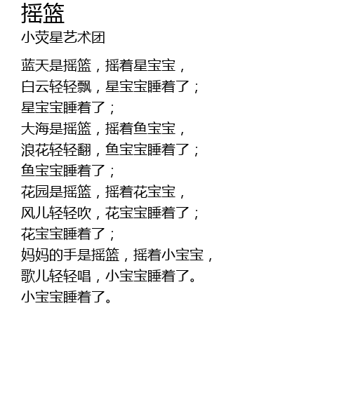 | [02:03.22] | 妈妈的手是摇篮,摇着小宝宝, |