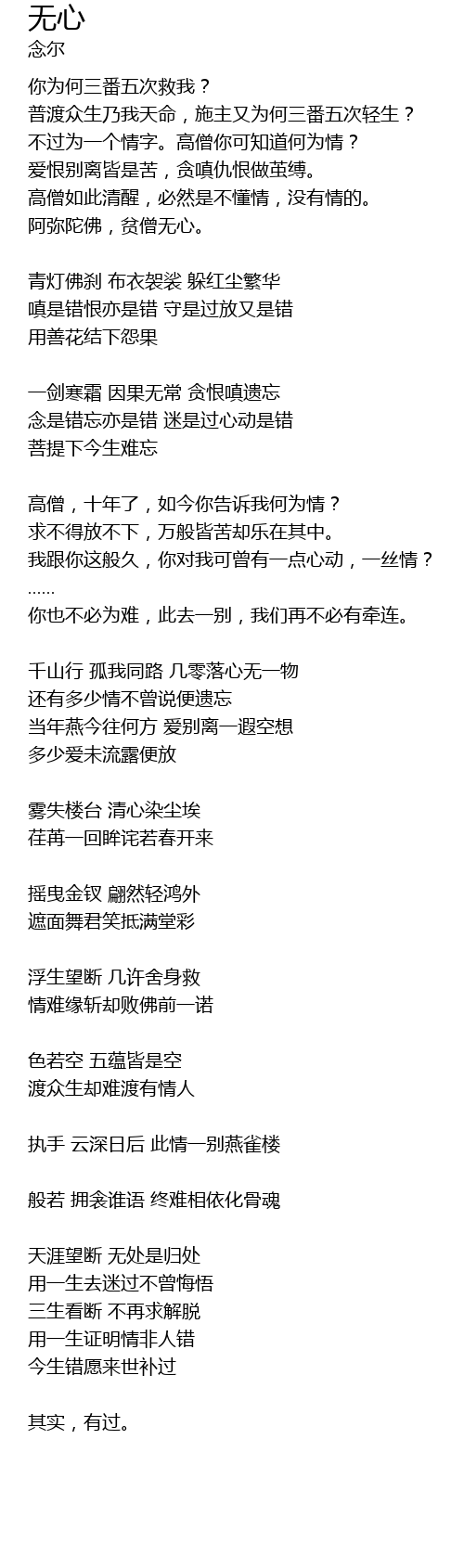 | gao seng ru ci qing xing, bi ran shi bu dong qing, mei you qing de. | |