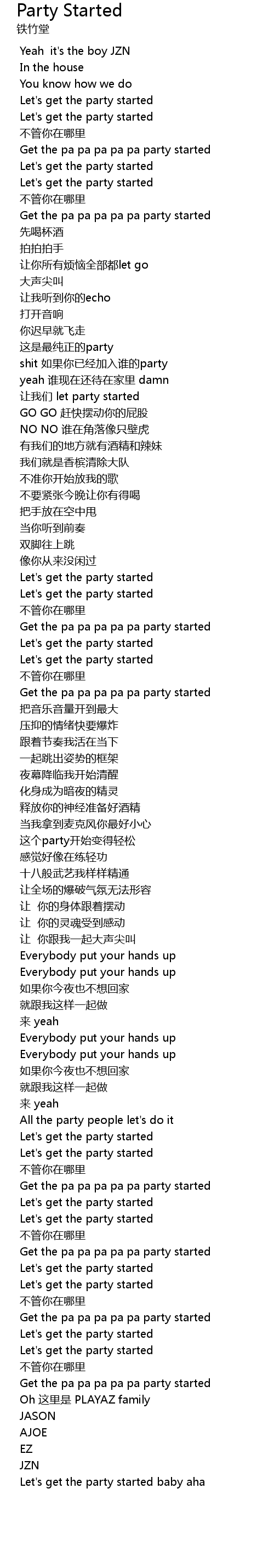 | [03:08.467] | Oh zhè lǐ shì PLAYAZ family |