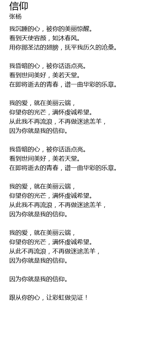 | yin wei ni jiu shi wo de xin yang. | |