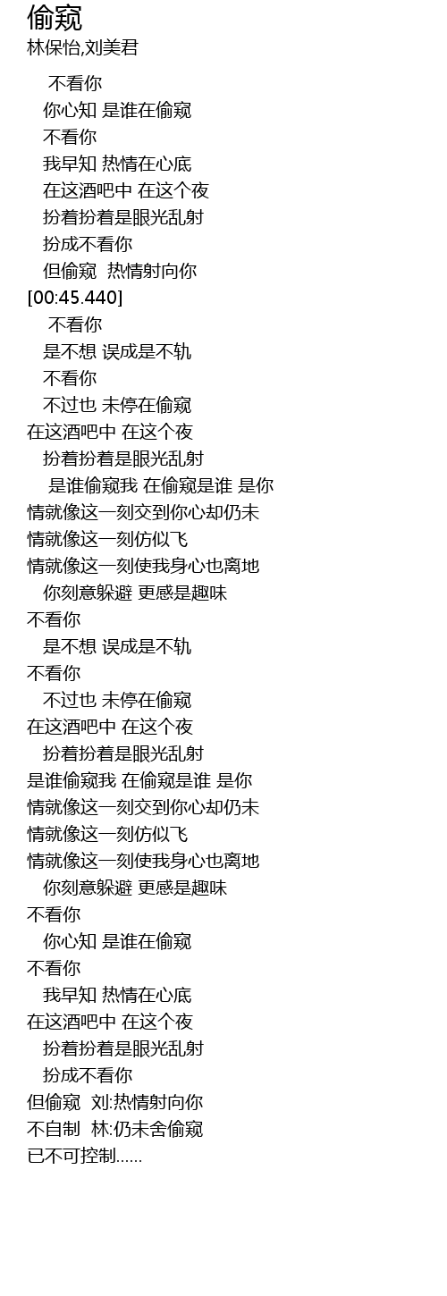 | [03:28.570] | 不自制 林:仍未舍偷窥 |