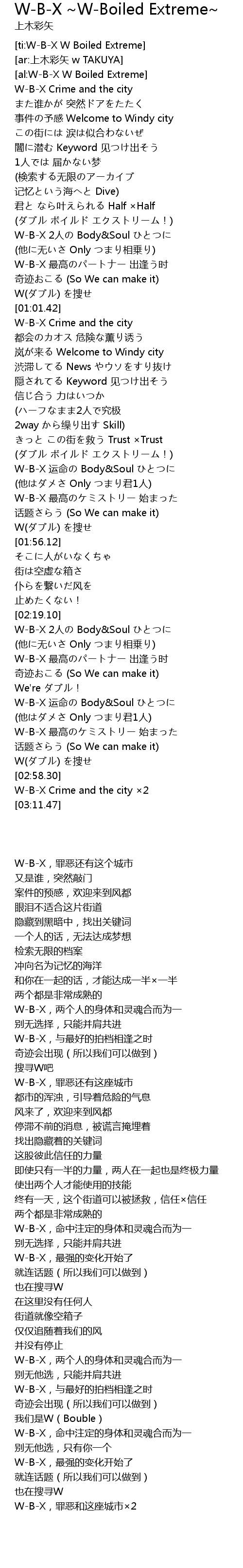 | [01:35.29] | W-B-X 运命の Body&Soul ひとつに |