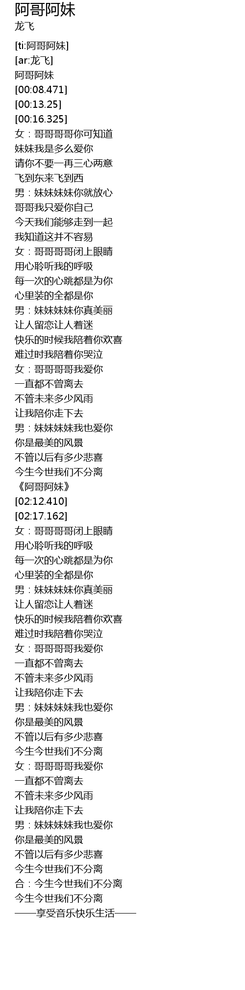 | [01:32.798] | 女:哥哥哥哥我爱你 |