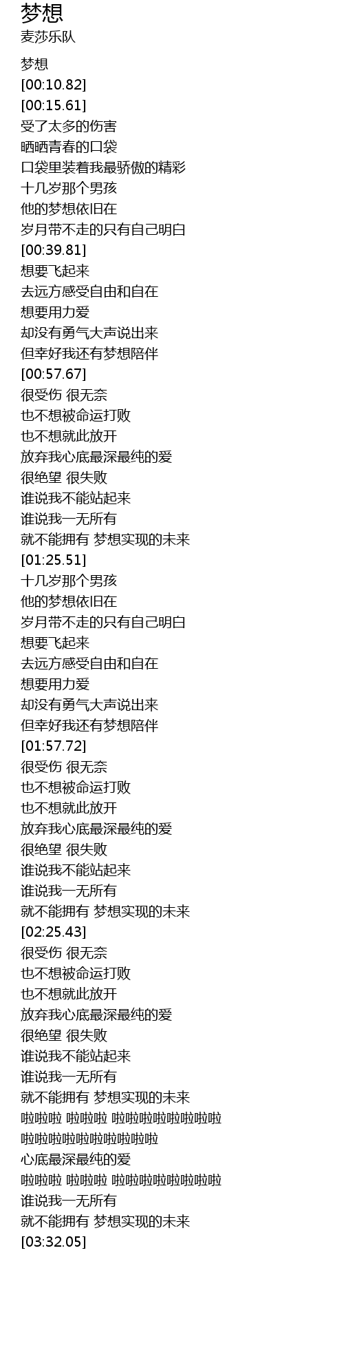 | [03:11.43] | 啦啦啦啦啦啦啦啦啦啦 |