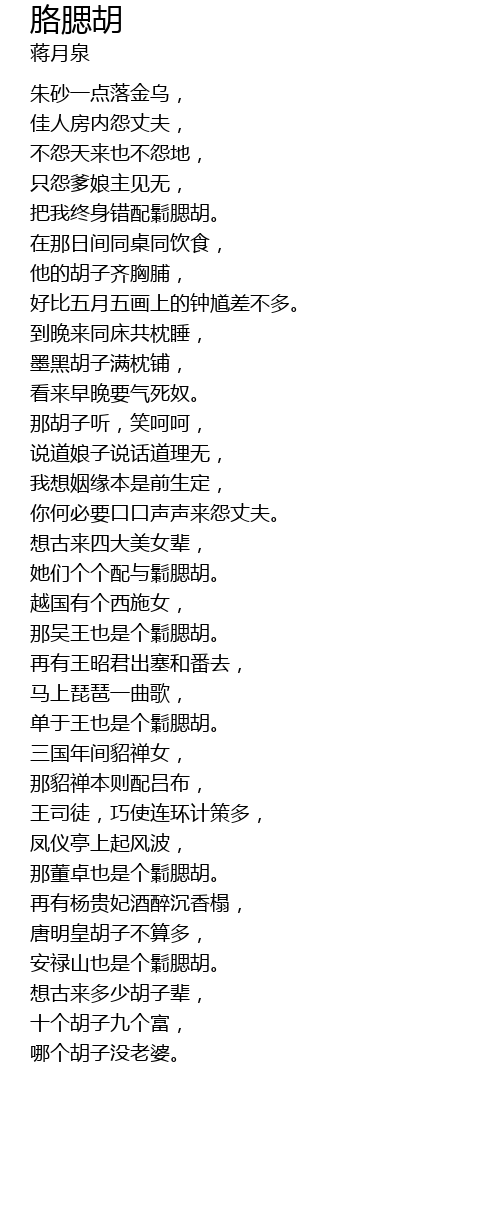 | [04:10.17] | 她们个个配与鬎腮胡。 |