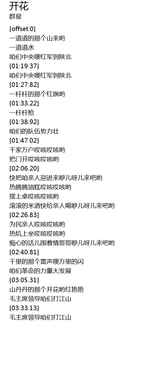 | [03:15.08] | 山丹丹的那个开花哟红艳艳 |