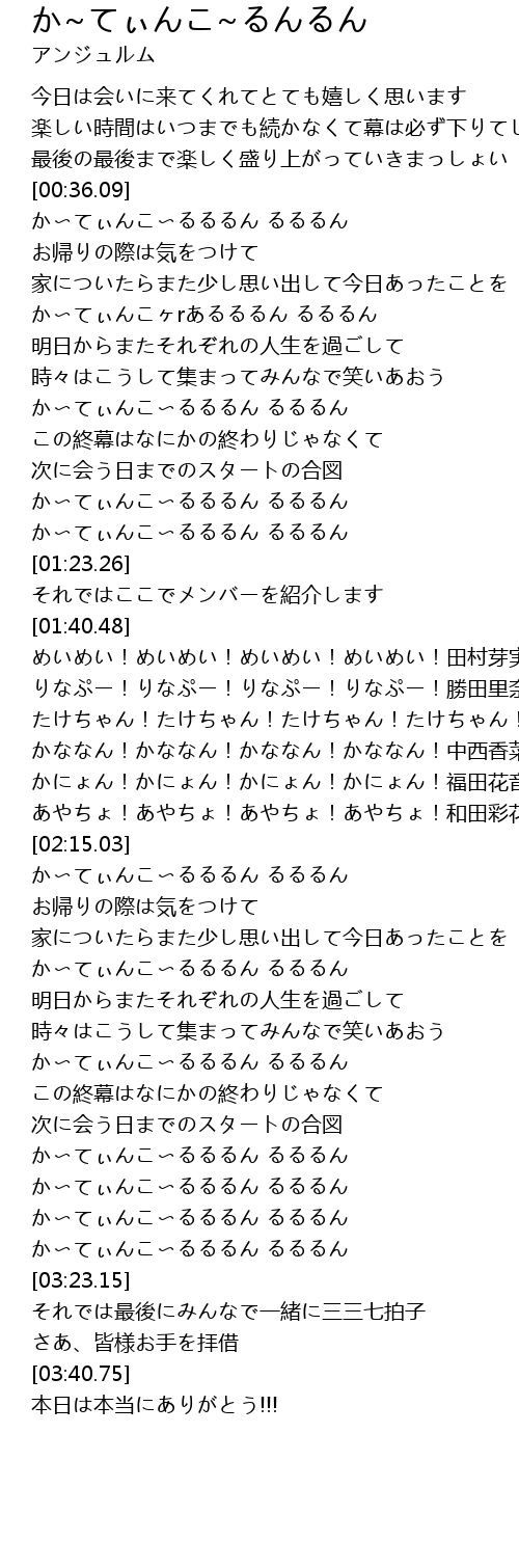 | [00:36.61] | か〜てぃんこ〜るるるん るるるん |