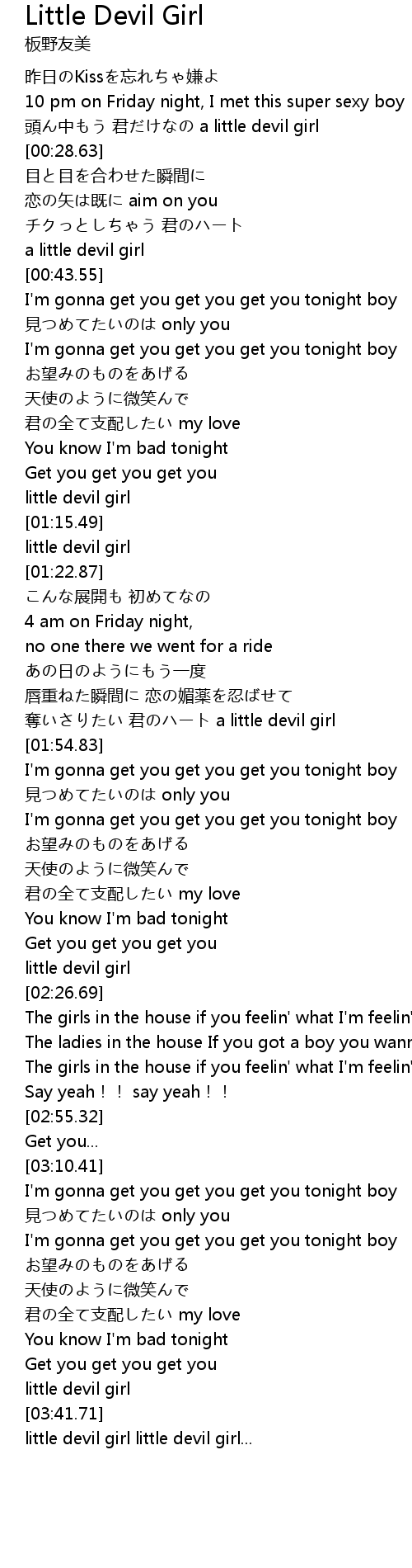 | [00:22.42] | 頭ん中もう 君だけなの a little devil girl |