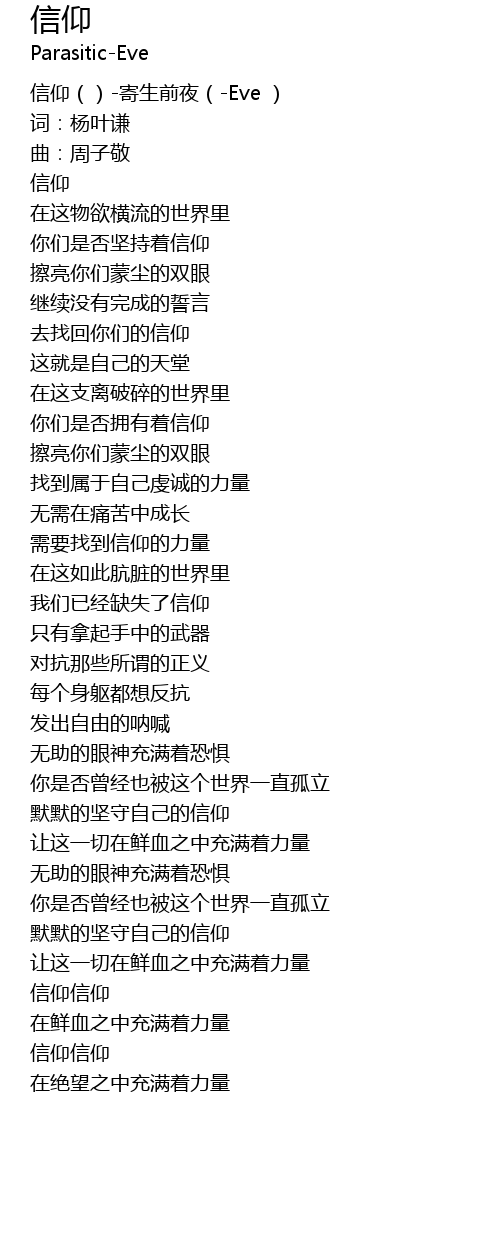| [00:00.00] | 信仰()-寄生前夜(-Eve ) |