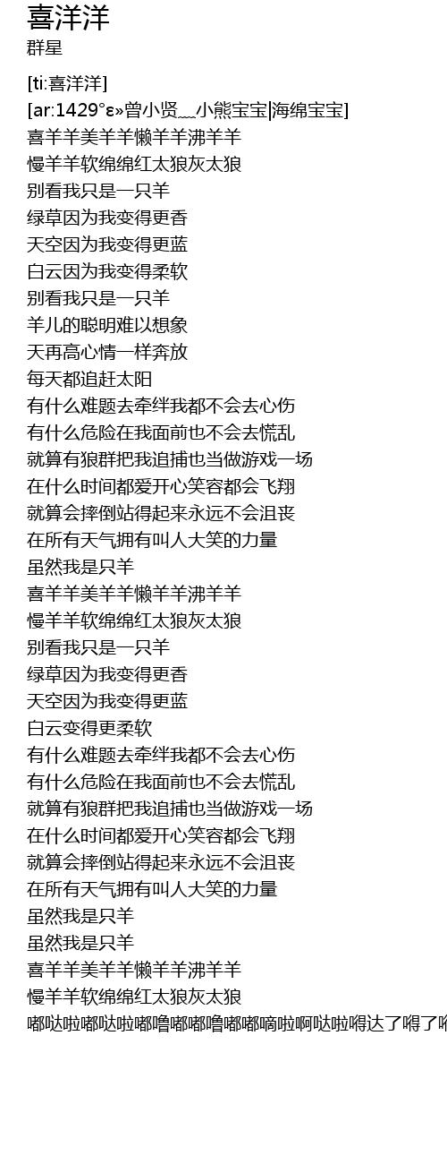 | [00:20.59] | 喜羊羊美羊羊懒羊羊沸羊羊 |